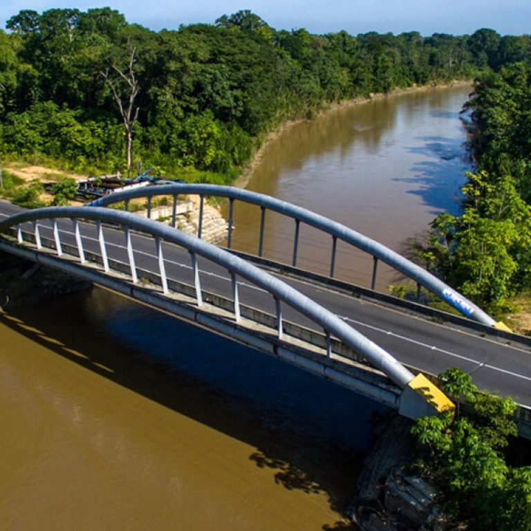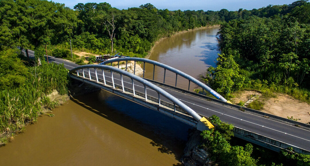 El puente principal está conformado por una estructura isostática de tres tramos, con una longitud total de 85 metros y un ancho de 22 metros. Los tramos de acceso alcanzan 28 metros cada uno, mientras que el tramo central, de 28,5 metros, está conformado por 11 vigas de acero que garantizan resistencia, durabilidad y estabilidad estructural.